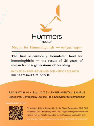Hummers Nectar is the result of long-running field and clinical work with hummingbirds—tested with hundreds of birds and used in zoological and professional settings.